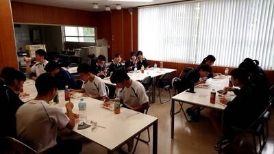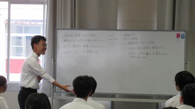 研修の予定を確認した後,生物の分類方法やホヤを用いる理由等を学びました。生物について,積極的に話し合う様子が見られました。
