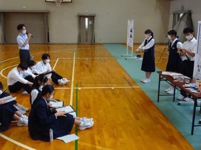 5時間目に本校体育館にて、課題研究Ⅱ発表会へ参加され、6時間目に合併教室にて、課題研究の現状と課題について研究協議を実施しました。