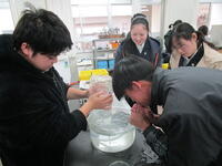 生徒たちは化学反応が穏やかになるか激しくなるかを予想しながら実験をしていました。