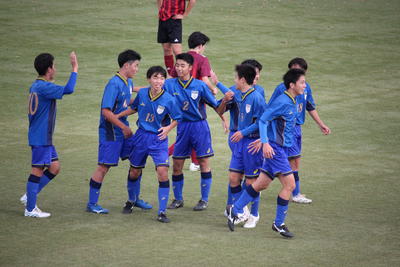 兵庫県高等学校サッカー選手権大会の予選ラウンド2回戦が10月8日(土)に行われました。立ち上がりのチャンスを得点に結び付け、前半を3-0で折り返し、後半にも追加点を挙げ、勝利を収めました。この勝利で予選ラウンド突破を決め、翌週からの決勝ラウンド(48チームが出場)に駒を進めました。