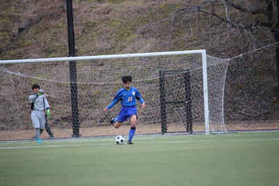 試合は先制点を許す苦しい立ち上がりとなり、さらに追加点を奪われます。それでも諦めずに攻め続け、3年生が持ち前の技術力を発揮。華麗なドリブルで相手2人をかわし、意地の1点を決めました。まさに3年生らしいゴールでした。
