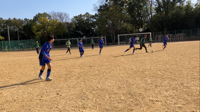 前半は3年生のコーナーキックに3年生がヘディングで合わせて先制。続いてサイドからのパスに1年生が合わせて追加点。フリーキック、サイド突破からのシュートも決まり、前半だけで4点を奪いました。