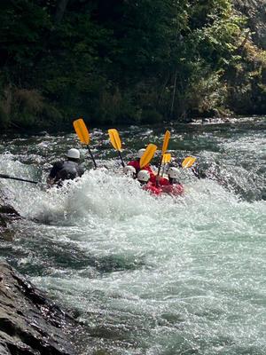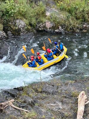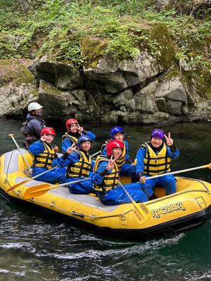 全クラス、午後のラフティング、クラス別研修に元気に出発しました。
