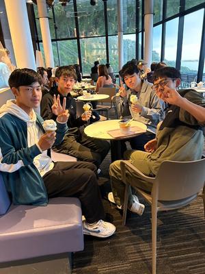 生徒はカフェでスイーツを買ったり景色を写真に収めたりしていました。