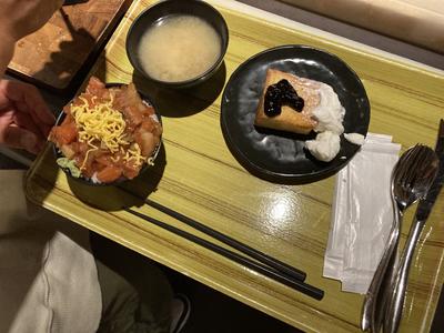 午前中に帯広市内でスイーツ巡りを楽しんだあと、昼食の豚丼を食べ、これからカーリングに向かいます。