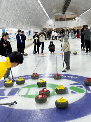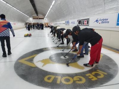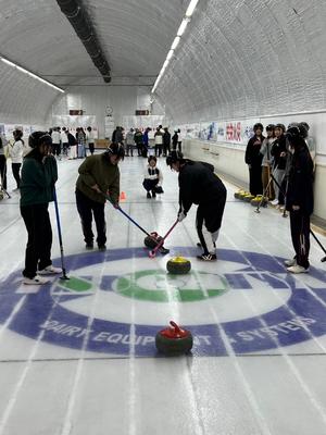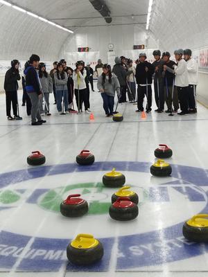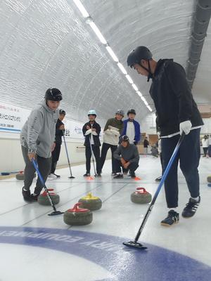 外の暑さを忘れる涼しさの中、けっこう難しいカーリング…どこを狙おうかな?