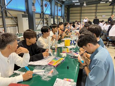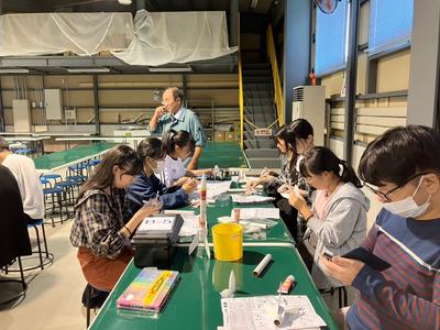 社長のありがたいお話を聞きロケットを一人一人作ります。