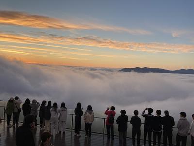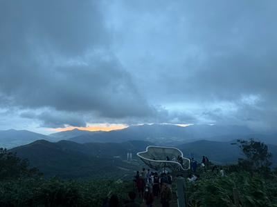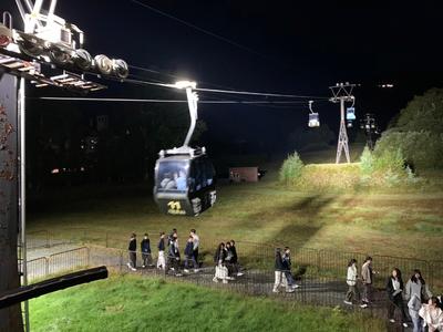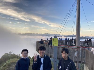 修学旅行4日目、1組・2組・3組の希望者で、雲海テラスへ向かいました。多くの生徒が参加し、期待感が高まります。雲海は見えるのでしょうか。