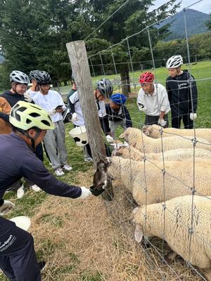 MTBの合間にひつじと戯れてみたりしました。ウメェー