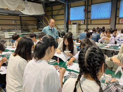 社長のありがたいお話を聞きロケットを一人一人作ります。