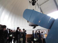 その後はオリジナル観望会として、天文台に設置されている60cm望遠鏡や、本校から持参した20cmの小型望遠鏡を用いて天体観測を行いました。途中から雨天となり、残念ながら十分な観測はできませんでしたが、望遠鏡の組み立て方や使い方について丁寧にレクチャーしていただきました。