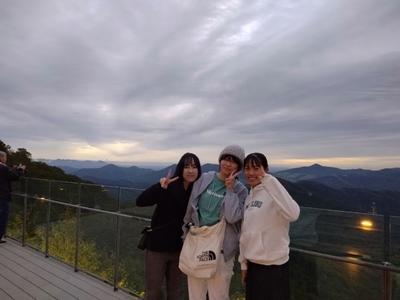 修学旅行4日目、1組・2組・3組の希望者で、雲海テラスへ向かいました。多くの生徒が参加し、期待感が高まります。雲海は見えるのでしょうか。