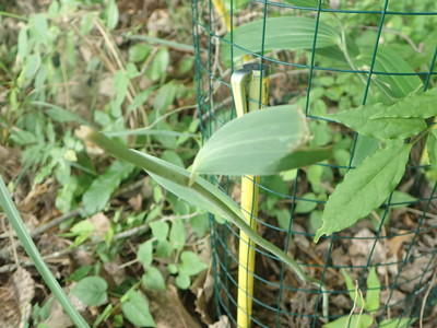 事前調査では5株程度がつぼみをつけていたのですが、成長してつぼみをつけると茎が斜めになり、柵からはみ出してしまいます。そこで今年は柵の大型化などに取り組みましたが、設置日には食害に会い1株になっていました。作業が遅れたことが悔やまれます。しかし残された一株から、交配・結実・採種に成功したら、無菌は種による実生増殖にも挑戦したいと思います。