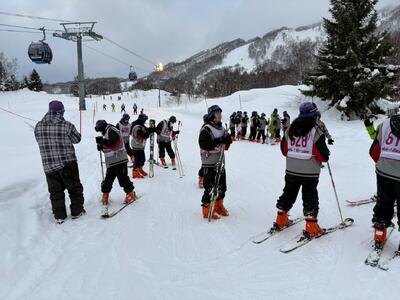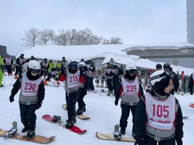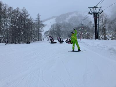 午後からは少し雪が舞う天候となりましたが、それでもなお良いコンディションで滑走することができました。ほとんどの班がゴンドラに乗り、スキー場の頂上付近まで上がり標高約1,300mからのパノラマビューを楽しみ、記念撮影もしました。そのままゴンドラで麓まで下りてきて再びスキー・スノーボード実習を行いました。2日目の午後とあって、どの生徒も上達した滑りができており、また滑る楽しさも感じていました。閉校式では、インストラクターの皆さんへの謝辞を5組の吉村くんが流暢な英語で行いました。その後、ナイター滑走組とホテル帰着組に分かれて過ごしています。
