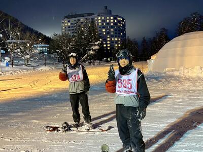 スキー・スノーボード実習の閉校式が終わってからの約1時間半、希望制でナイター滑走を実施しました。約170名と半分以上の生徒が参加し、フリー滑走で仲の良い友達同士で元気に最後のニセコのゲレンデを楽しみました。昼間とは雰囲気も異なり、イルミネーションもきれいでした。