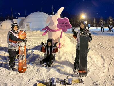 本日の昼間、スキー・スノーボード実習に参加できなかった生徒を対象に、見学者ツアーが組まれました。雪上ゴムボートやスノーモービル体験、雪遊び等で普段は足を踏み入れることのないエリアでの活動に満足気な面持ちでした。明日の見学者ツアーはヒルトンニセコビレッジを出ての体験となります。