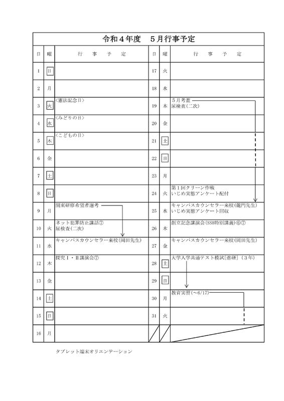 令和4年度1月 行事予定