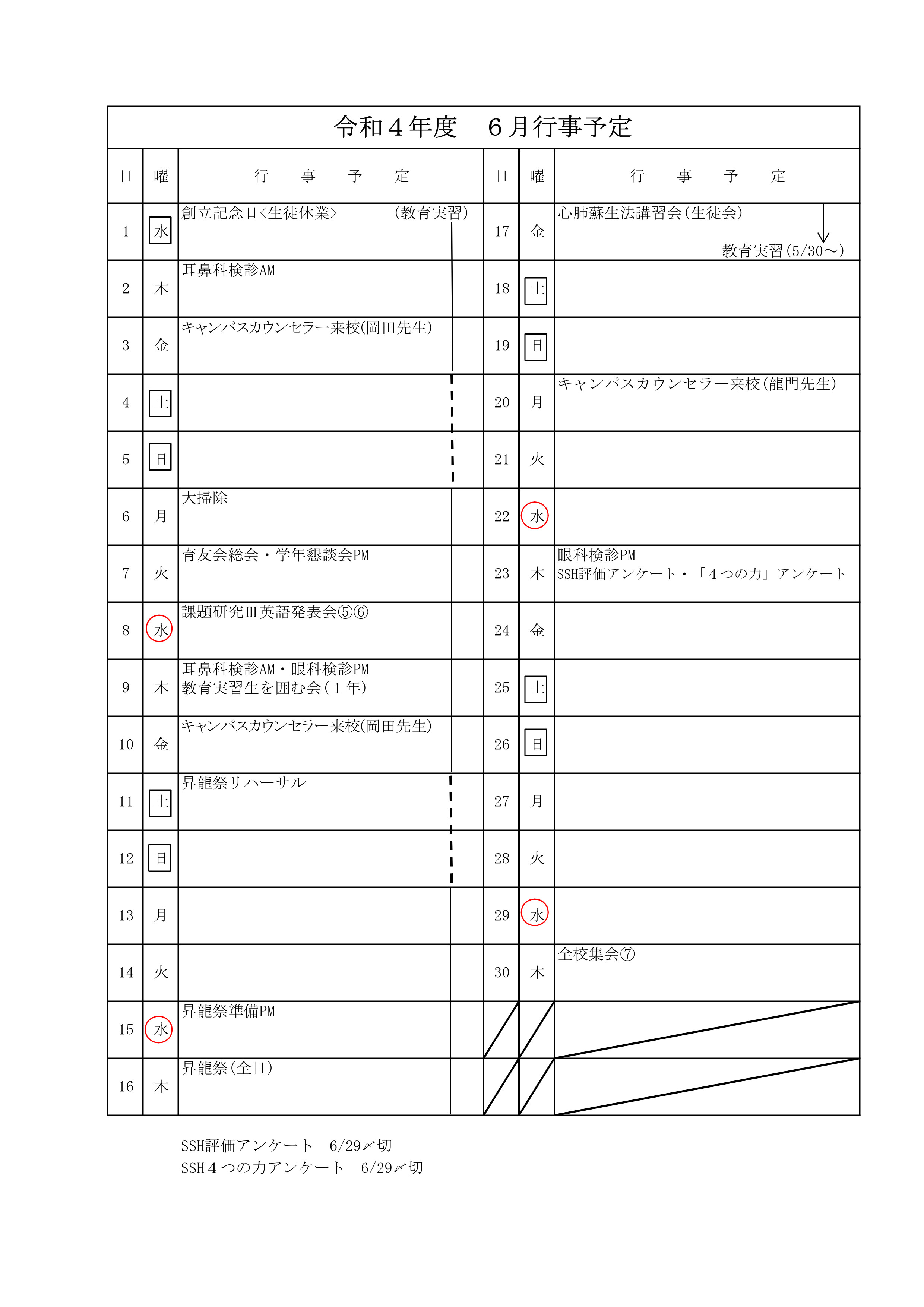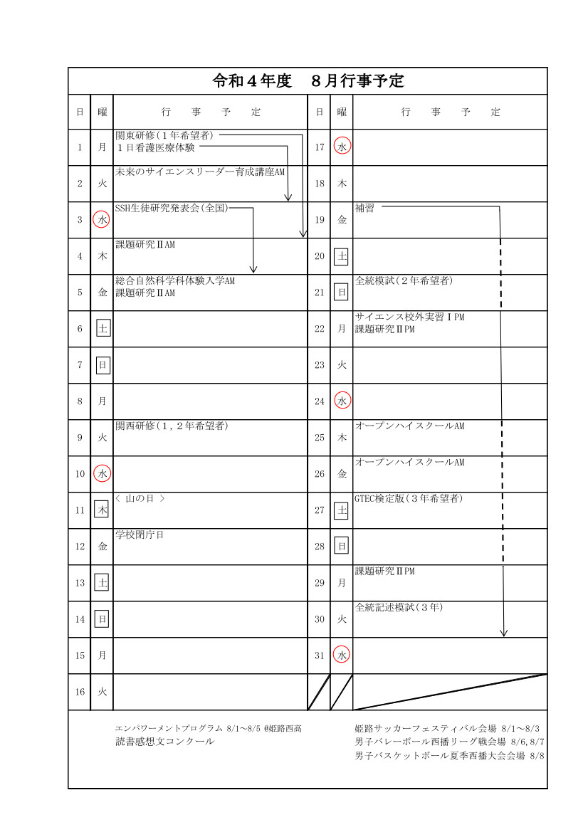 • 行事予定