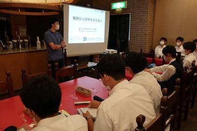 さらに,ホテルでは本校の卒業生であり,現在,東京大学生産技術研究所准教授の松久直司先生との交流会を開催しました。松久研の紹介から,高校時代のお話,後輩へのメッセージをいただきました。最後には質疑応答も行いました。MIT Technology Review Innovator Under 35 Globalを受賞されるなど,『龍野から世界へ』を体現されている先生との交流の時間は生徒たちに大きな影響を与えてくれるものでした。
