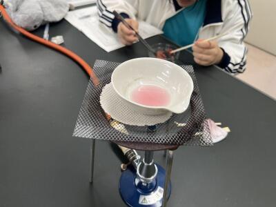 1日目は「ピンク色の塩」が精製されましたが、この結果を考察し、2日目には新たな実験方法を考え、課題に取り組んでいました。スライド発表では写真だけでなく、実験動画を挿入するなど、各班工夫が見られました。