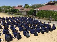 入所式では、団長である駒田校長より、この野外活動を通じてクラスや学年の親睦を深め、龍野高校生としての規律や責任を学ぶ重要性について訓話をいただきました。続いて学年主任の中藤先生から生徒たちに、集団行動における「自律」と「協調」の精神を大切にし、飯盒炊飯やオリエンテーションに取り組むよう激励の言葉がかけられました。