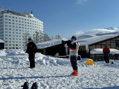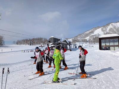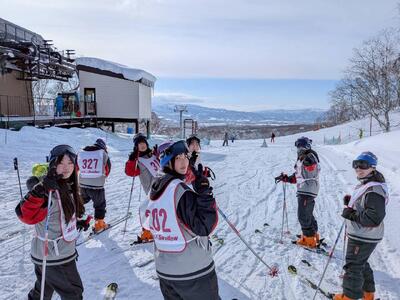 天気は快晴。昨日までの雪のお陰で今シーズン最高のゲレンデコンディションでスキー・スノーボード実習を迎えました。クラス記念撮影の後、開校式が行われ、駒田校長先生の挨拶、スキースクールの校長先生の挨拶の後、生徒代表で谷さんが英語での挨拶をしました。今回の実習のインストラクターは全員英語のネイティブスピーカーで、指示も全て英語で行われます。初めてのスキー・スノーボードの生徒も少しずつ慣れてきて、転びながらもコツを掴みつつあります。上級者はさすがの滑りで高い技術を披露しています。昼食は北海道名物の豚丼で英気を養い、午後からの実習に備えています。