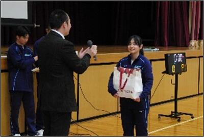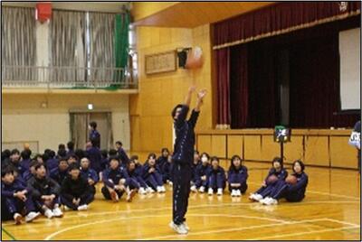 クラス対抗で、①フリースロー対決、②歩いてしっぽ取り、③クイズ大会の3種類で競い、5組が優勝しました。どのクラスも一生懸命に楽しんでいました。