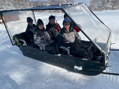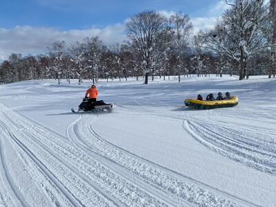本日の昼間、スキー・スノーボード実習に参加できなかった生徒を対象に、見学者ツアーが組まれました。雪上ゴムボートやスノーモービル体験、雪遊び等で普段は足を踏み入れることのないエリアでの活動に満足気な面持ちでした。明日の見学者ツアーはヒルトンニセコビレッジを出ての体験となります。