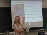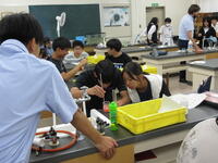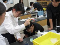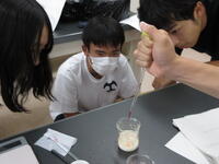 生徒たちは化学反応が穏やかになるか激しくなるかを予想しながら実験をしていました。