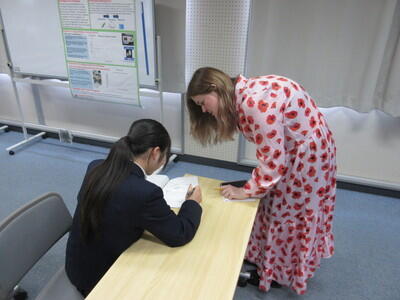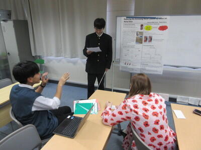 発表練習では、英語科教員やALTから発表内容についての質問がある他、伝え方の工夫のアドバイスなどがありました。