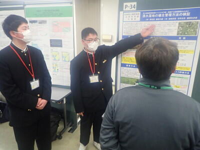例年2月11日に人と自然の博物館で開催されている「共生のひろば」でポスター発表をおこないました。この発表会では、中学生から社会人まで多くの研究発表をみるだけでなく、人博の多くの研究者から指導助言を受けることができるので生物班の活動にも大変役立っています。