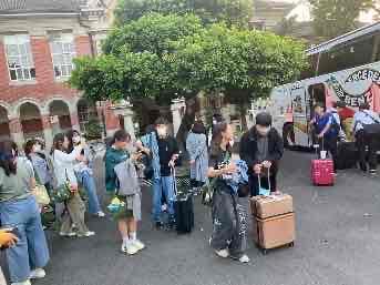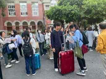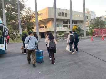 台南女子高級中学に到着しました。学生が龍野高校生の名前を書いた紙を持って、出迎えてくれました。