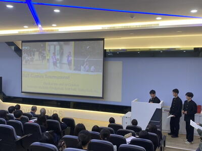 その後、学校紹介を行いました。昇龍祭や体育大会、部活動の様子をプレゼンしました。
