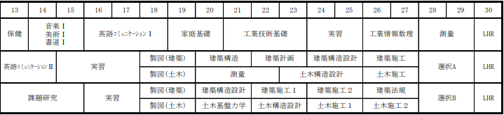 | 建築類型 | 住宅・店舗・ビルなどの構造や施工方法を学ぶとともに、快適な住空間を設計するために必要な知識や法律、感性を身に付けます。 |