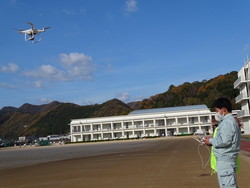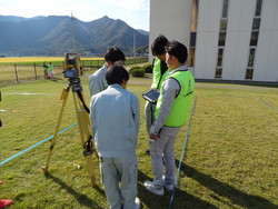 現役の測量士の方々に来校していただき、最新の測量機械の取り扱いや、UAV(ドローンを使った測量)に関する基礎知識とルールを講義形式で学んでいます。