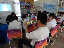 座学では、事前にご用意していただいた資料や、全国生コンクリート工業組合連合会によって作成されたwebページ「ナマコンパーク」を用いて、コンクリートの材料や性質、工場では実際にどのように生コンクリートが製造されているのか等、高校生にもわかりやすく説明していただきました。