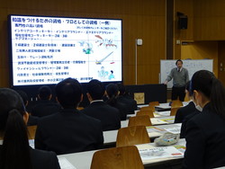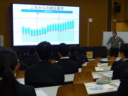 建設業に対する興味・関心を高めることを目的として、地元の建設企業数社に来校していただき、仕事のやりがいや魅力についてOBやOGから具体的に説明してもらう講座を実施しています。