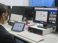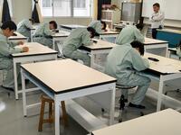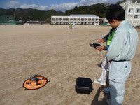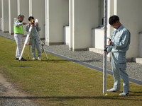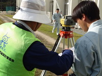 現役の測量士の方々に来校していただき、最新の測量機械の取り扱い方や、UAV(ドローンを使った測量)に関する基礎知識とルールを講義形式で学んでいます。