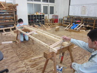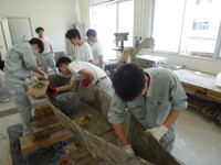 水に浮かない「コンクリート」を材料として製作するカヌー。生徒たちは様々なアイデアを出し合いながら、毎年8月に行われる大会での上位入賞を目指して取り組んでいます。