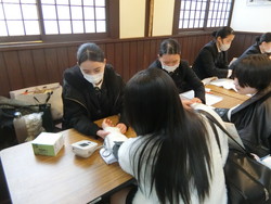 龍野北高校総合デザイン科主催の「町ぢゅう美術館」に看護科1年生2名、2年生3名が参加しました。1年生はハンドマッサージ、2年生は血圧測定を実施し、来場者と交流しました。