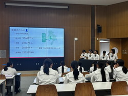 高校2年生が地域在宅看護の授業で、人々が健康的に暮らし、たとえ健康障害があっても地域で暮らし続けられるよう支援するために大切なことについて考えました。理解を深めるには、地域の特性を多角的に知ることが必要なため、グループワークで様々な意見を出し合いながら調べ学習をしました。また、地域の良いところや課題についても考え、スライドにまとめたものを用いて発表しました。
