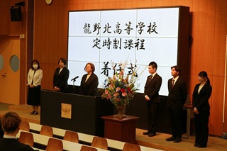 本日、龍野北高等学校アセンブリホールにて、令和8年度着任式が行われました。今年度は教頭先生をはじめ6名の先生方が着任されました。
