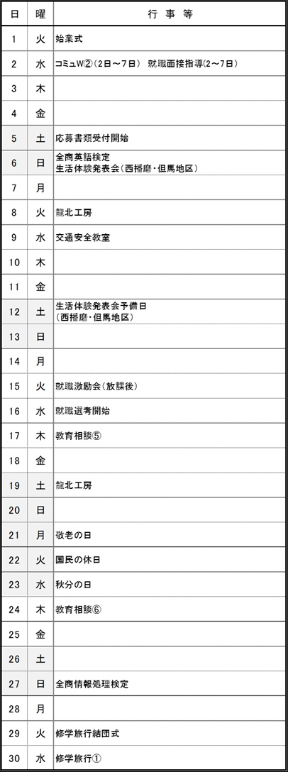 | 日 | 月 | 火 | 水 | 木 | 金 | 土 |