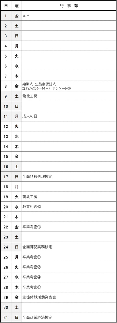 | 日 | 月 | 火 | 水 | 木 | 金 | 土 |