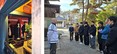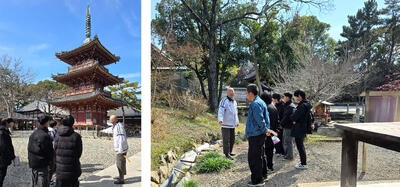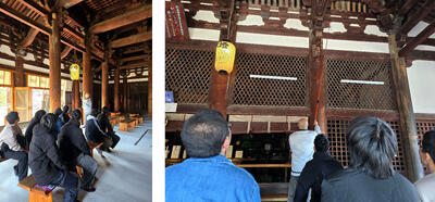 3月11日(水)、本校建築研究部(大工コース・ファブラボスタジオコース)の部員9名が、鶴林寺の吉田実盛住職にご案内いただき、境内の文化遺産を見学しました。