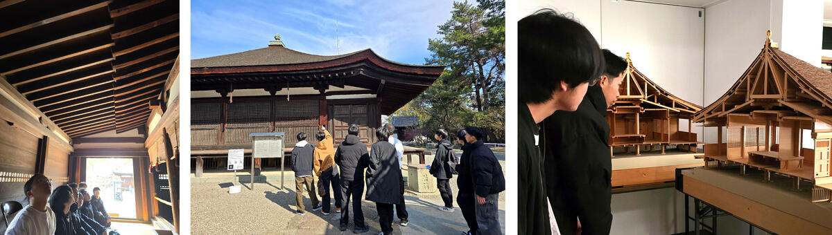 本堂では、複数の建築様式が取り入れられていることや、梁や肘木の工夫によって広い空間と美しさが成り立っていることを学びました。文化財としての価値だけでなく、建築を学ぶ上でも大変貴重な建物であることを実感しました。