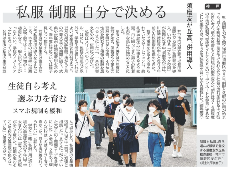 7月9日(土)の神戸新聞朝刊の広域面に記事が掲載されました。