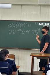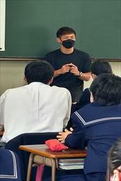 5月12日(木)現在、タイのサッカープロリーグで活躍されている村上一樹さんに来校いただきました。村上さんは、大学卒業後FC岐阜でプレーされ、その後タイのリーグへ移籍され、10年近くプレーをされています。2年生の授業では、タイでの生活や夢についてQ&A形式で講義をしていただきました。また、放課後はコンディションが悪い中、サッカー部の指導もいただきました。「夢をかなえるだけでなく、そのあと自分が何をするのか、どのように社会に貢献していくのかまで考えることが大切」という言葉が生徒の心に響きました。