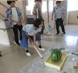8月22日(金)、全校登校日を終え、舎生二人が元気に寄宿舎に帰ってきました。部屋にあった浴衣に着替えて二階プレイルームに行きました。食べ物屋台でおなかを満たし、ゲーム屋台で楽しく遊び、すいか割りに全集中!! 割ったスイカとおやつを食べながら、夏祭りを振り返り、チャレンジデイ③は終了しました。笑顔いっぱいのチャレンジデイ③(寄宿舎夏祭り)になりました。