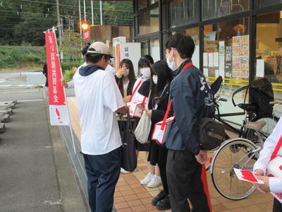 赤い羽根共同募金 投稿日時 : 2024/12/11 システム管理者 10月23日に赤い羽根共同募金の募金活動をマルワ三坂店さんの前で実施しました。 定時制の生徒会が中心となり0校時履修者も手伝ってくれました。短時間の活動でしたが15045円もの募金をしていただけました。ありがとうございました。 Tweet {{options.likeCount}} {{options.likeCount}} {{options.unlikeCount}} {{options.unlikeCount}} 0 コメント